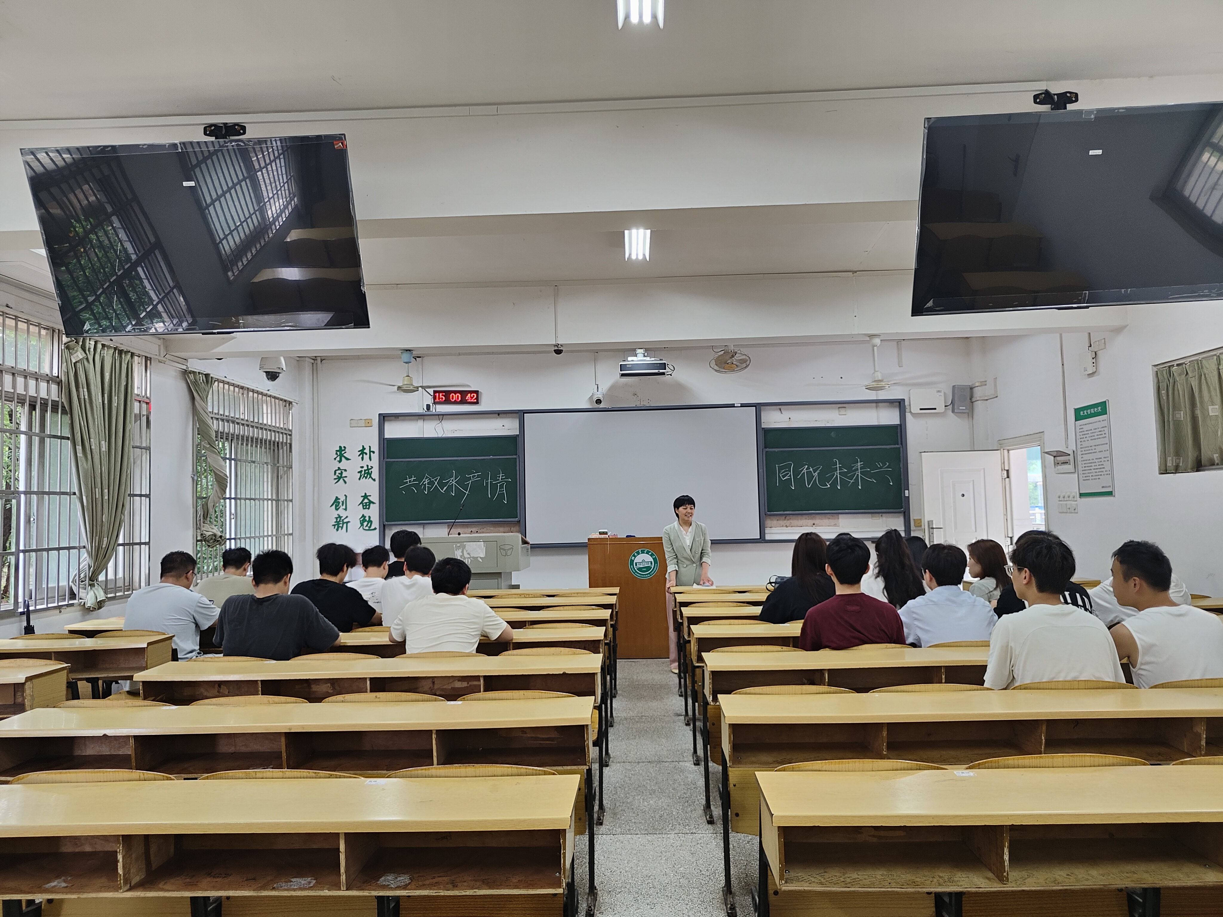 各毕业班召开了“共叙水产情,同祝未来兴”主题班会,交流了同窗深厚情谊,听取了员工对公司的意见建议,了解员工就业情况和需求,开展了安全教育、文明离校教育和班级特色活动,并进行了合影留念。