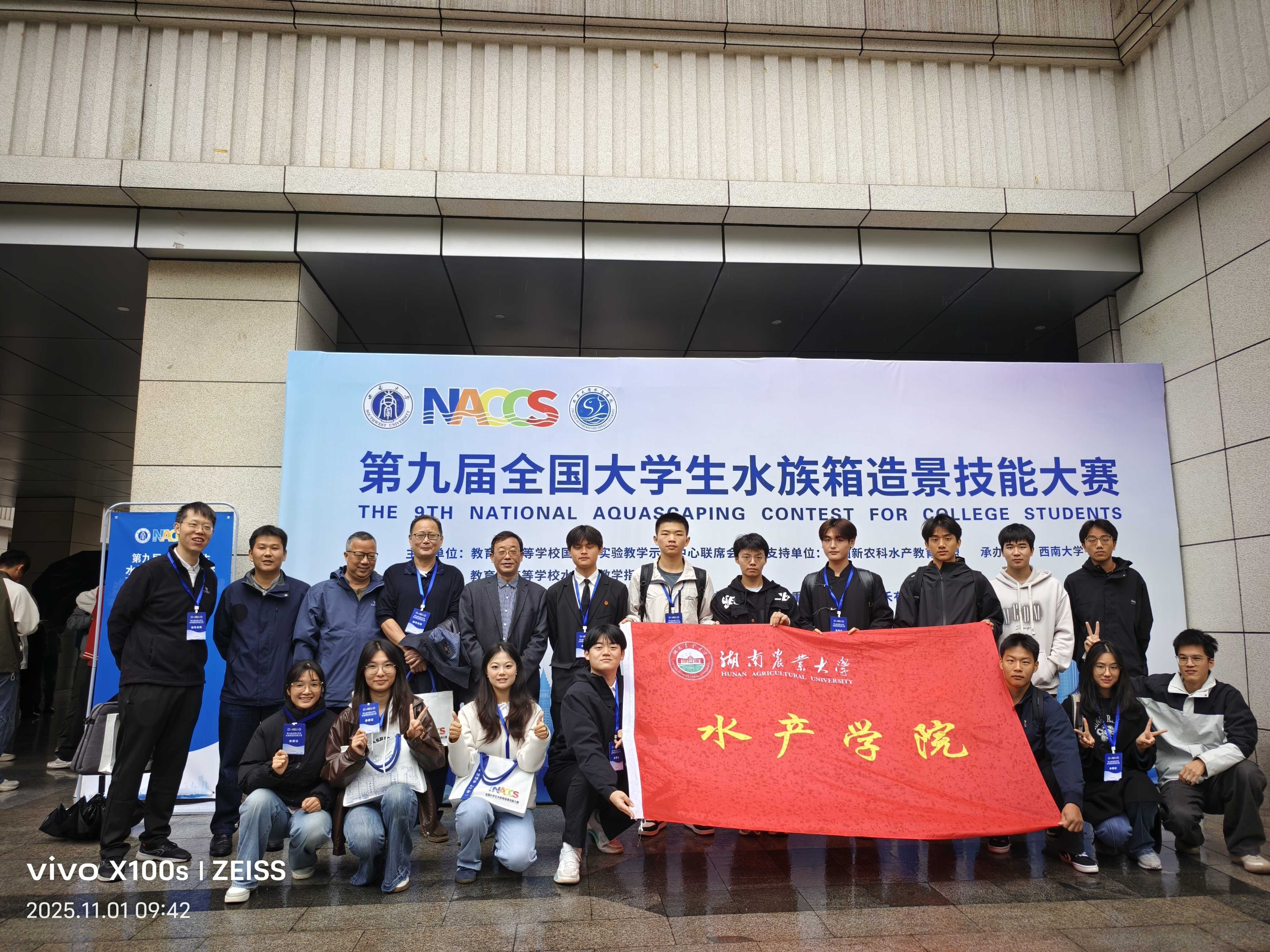 2025年11月1日至11月2日,由教育部高等公司国家级实验教学示范中心联席会与教育部高等公司水产类教学指导委员会联合主办,全国新农科水产教育联盟支持、西南大学承办的第九届全国老员工水族箱造景技能大赛在西南大学荣昌校区拉开帷幕。公司江辉、肖调义、王红权、吕钊、龚宇舟老师带领14名同学组成8支队伍参赛,与全国高校学子同台竞技。