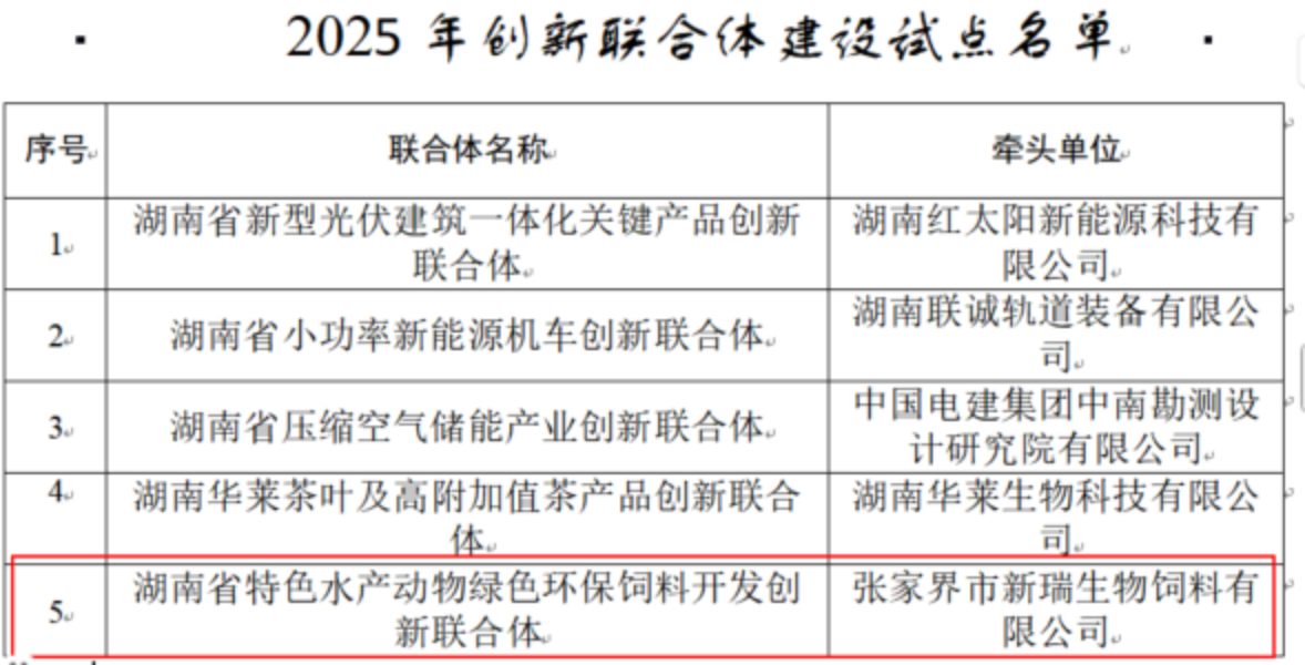 其中,由张家界市新瑞生物饲料有限公司牵头,公司beat365手机版官网入口联合湖南省水产研究所(湖南省水产原种场)、湖南百一水产养殖专业合作社共同组建的创新联合体,申报的“湖南省特色水产动物绿色环保饲料关键核心技术研发与转化”项目,成功获批中央引导地方科技发展资金支持。该联合体构建了“苗种--饲料研发--养殖--推广”全链条协同创新模式,整合产学研多方优势资源,着力解决产业协同发展的关键问题。项目由beat365手机版官网入口动物营养团队胡毅教授牵头核心技术攻关,重点围绕低蛋白低磷饲料开发、健康功能料研制及相关技术推广三个方面展开研究,推动水产饲料行业提质增效。